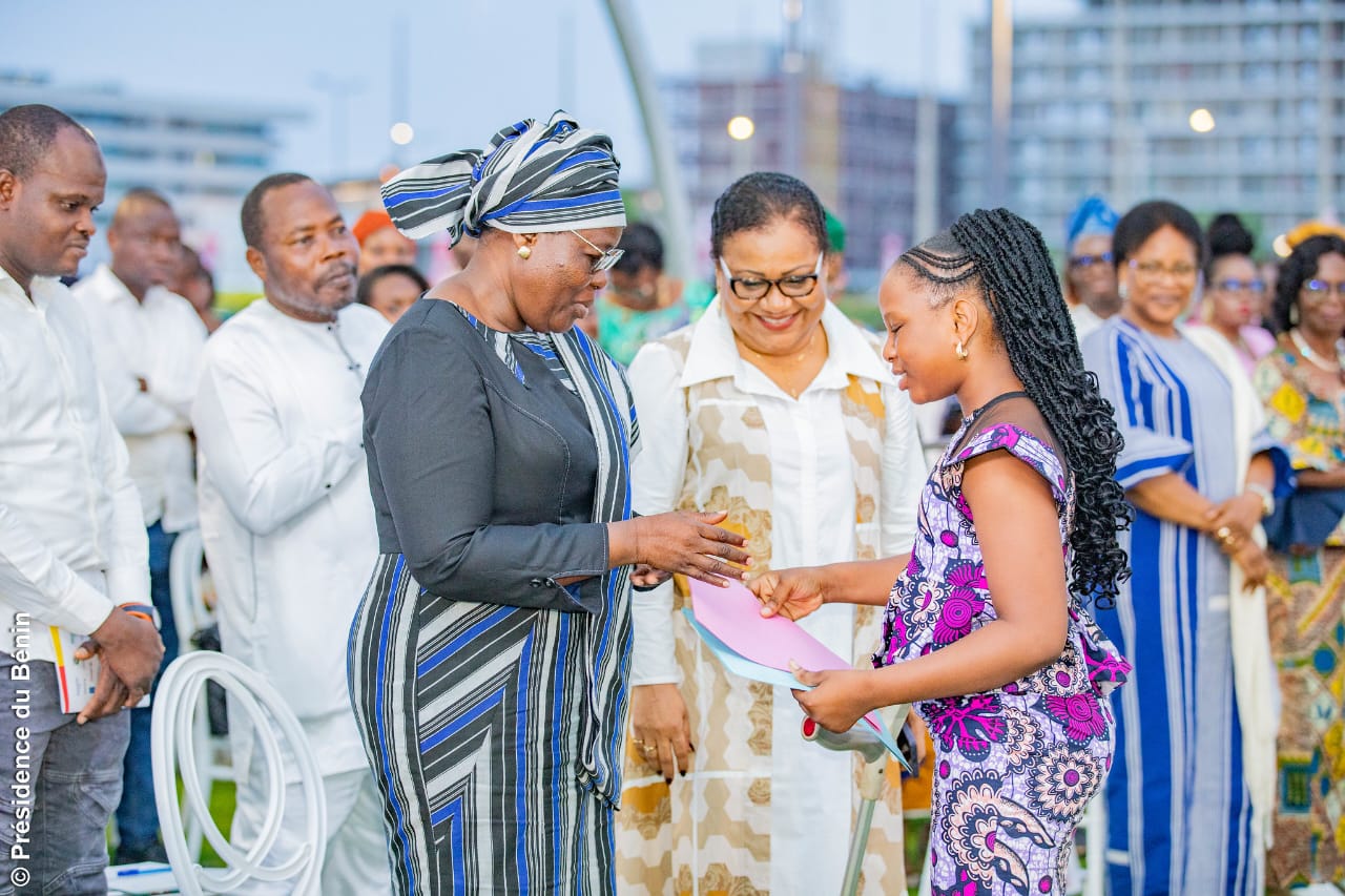 L’un des moments marquants de la cérémonie a été l’intervention de Madame Huguette BOKPÈ GNACADJA, Présidente de l’Institut National de la Femme, qui a tenu la promesse faite lors de l’édition précédente en cédant son temps de parole à une jeune fille. Une adolescente de 12 ans s’est ainsi adressée à l’assistance pour rendre hommage aux femmes et rappeler l’importance de promouvoir et de protéger les droits des filles.